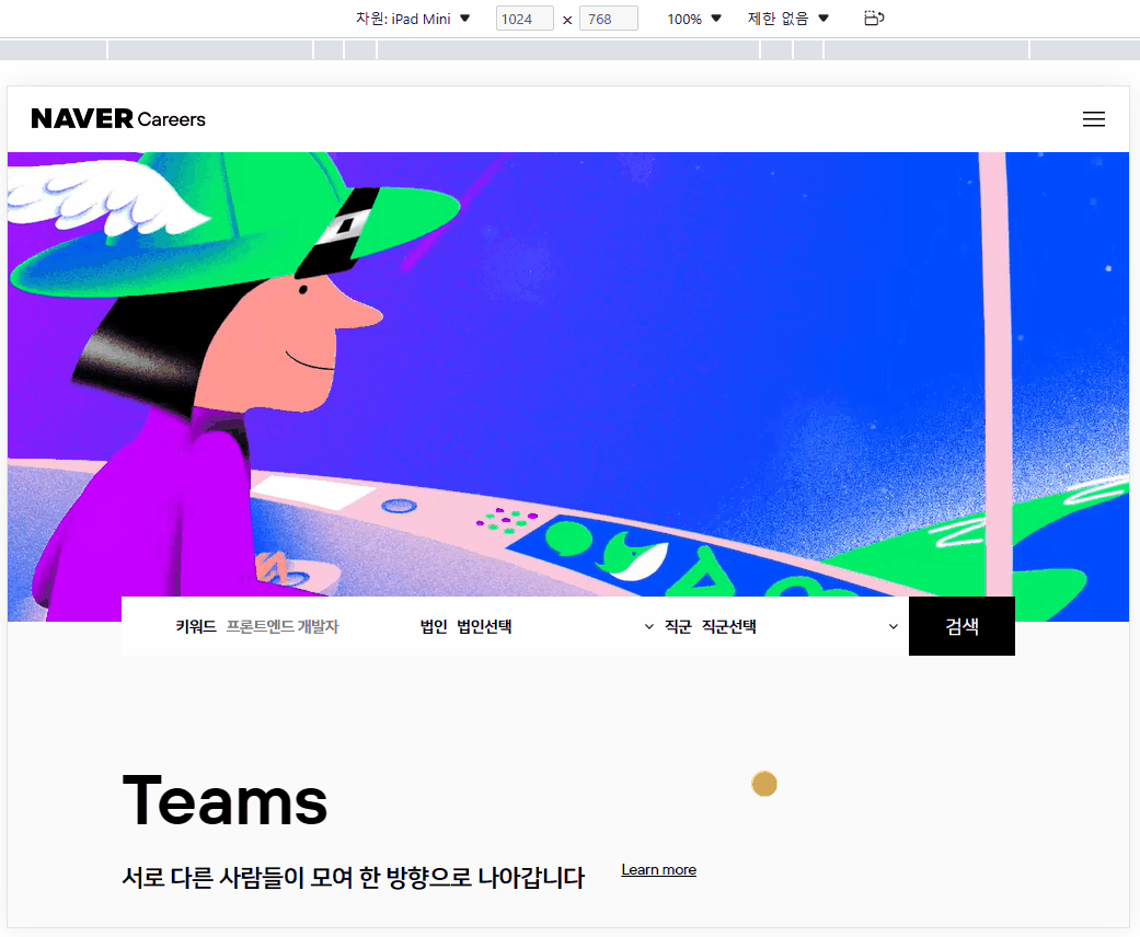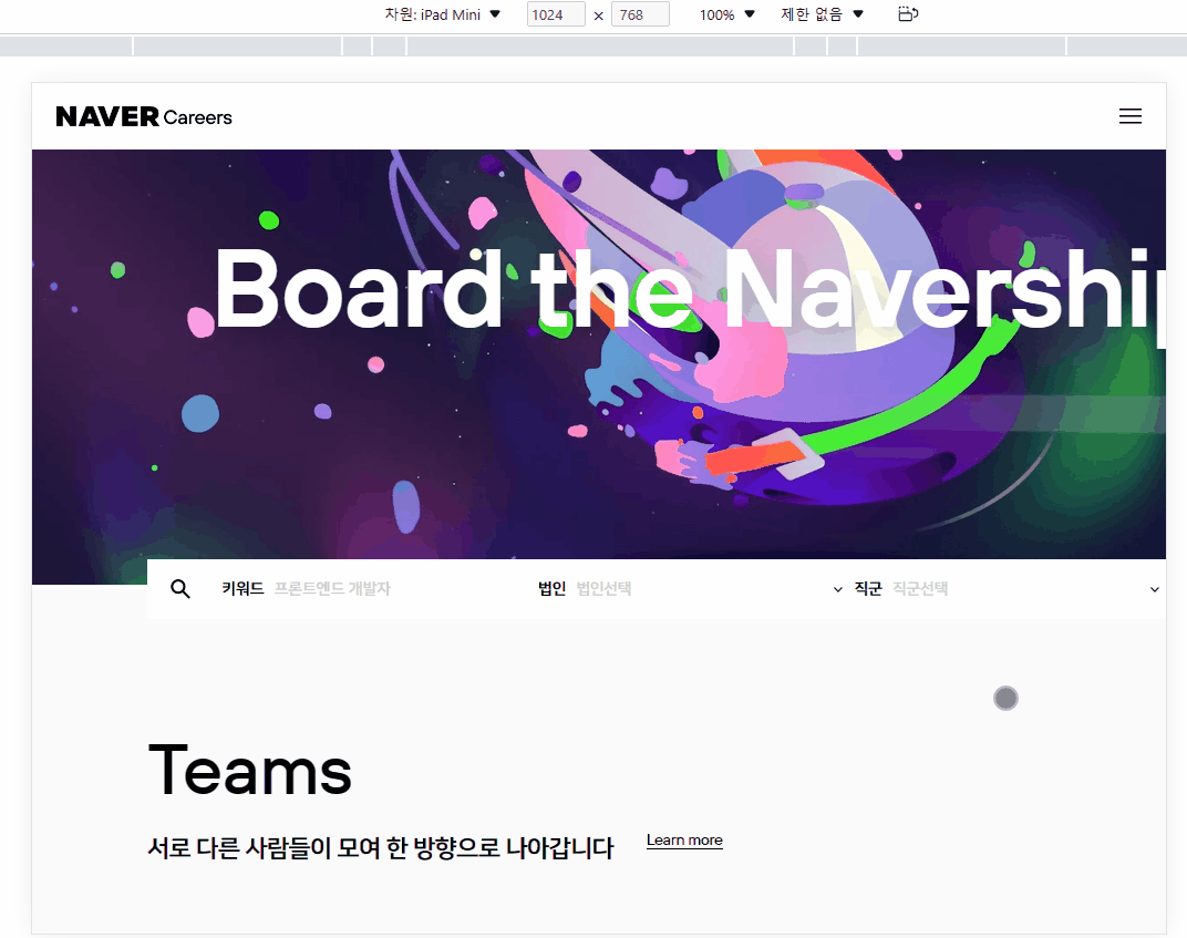 ๊ธฐ์กด NAVER Careers๋ 1230px ์ดํ๋ก ๊ฐ๋ก ์คํฌ๋กค์ด ์๊ธฐ๋ ํ์์ด ์์ด ์ฌ์ด์ฆ๋ฅผ ๊ฐ์ ํ๋ค.