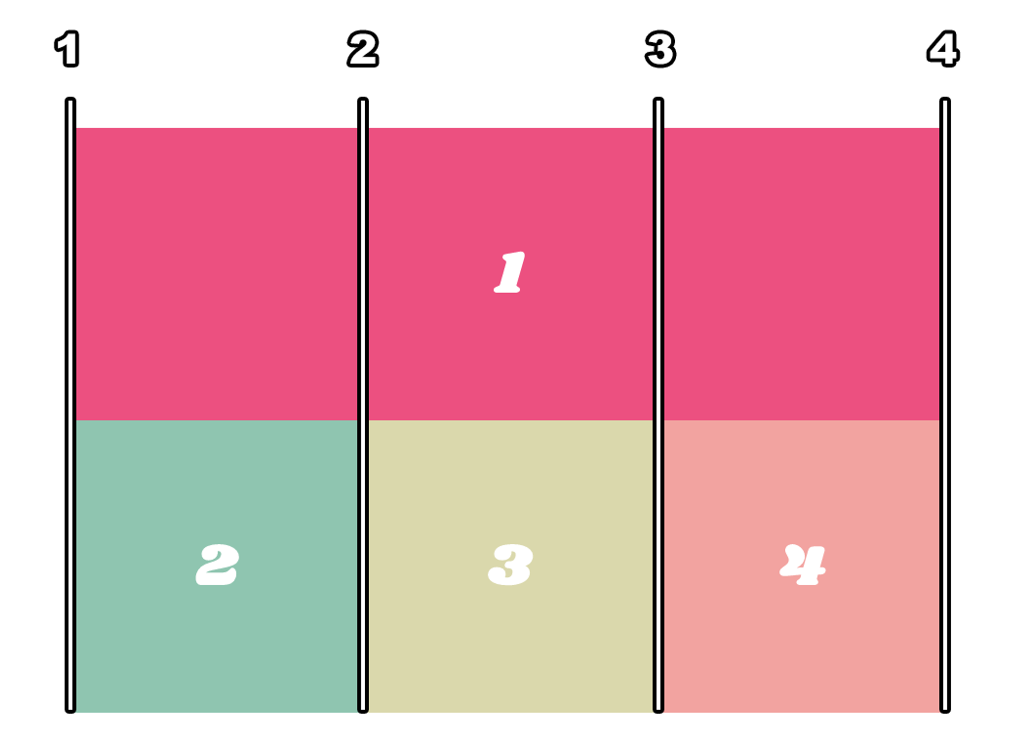 형식은 간단하다. 아래 코드에서 grid-column: 2 / 5;에 start는 2고 end는 5를 의미한다.
