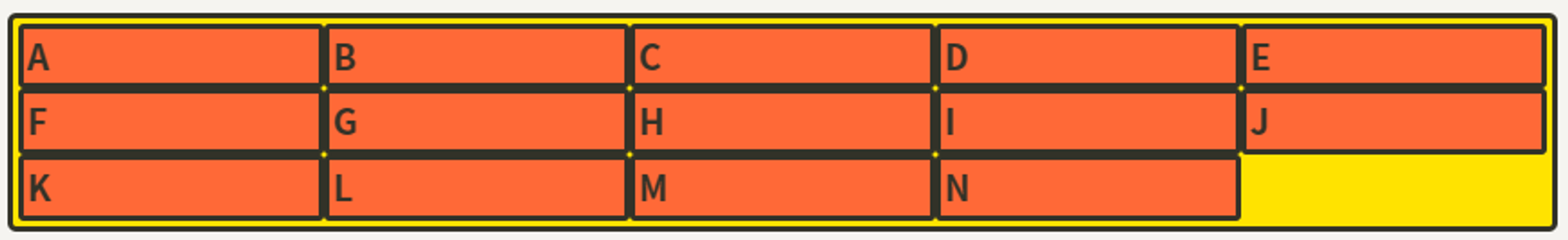 auto-fil 의 크기를 20%로 설정했으므로, 1개의 row에는 5개의 셀이 들어갑니다.